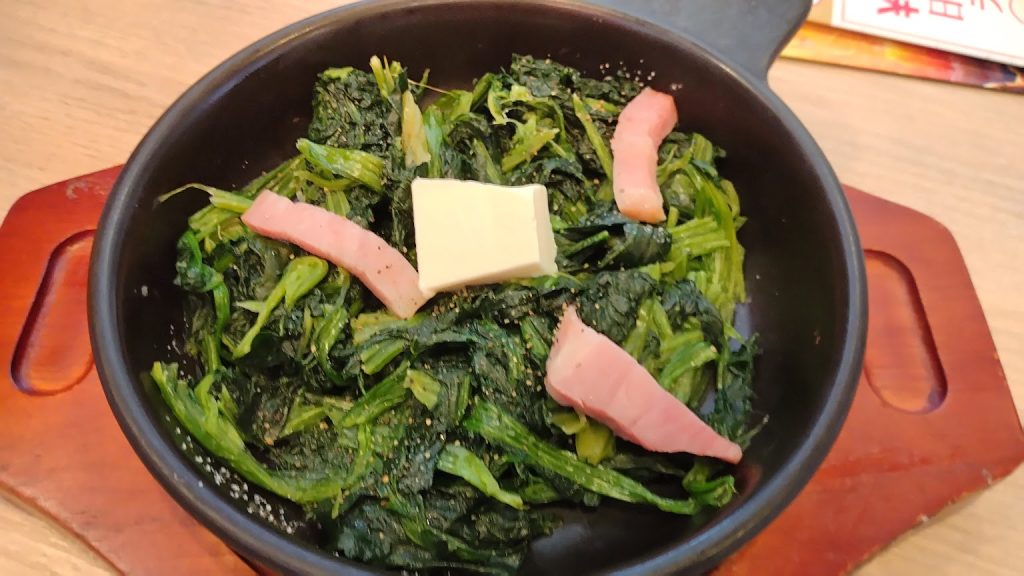 株主優待カードがなければ,ほうれん草ベーコンをオーダーすることはなかったと思う。不足しがちなビタミン C を摂取するいい機会でした。