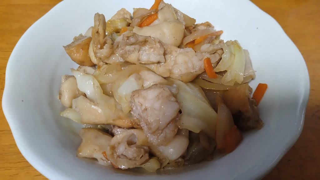 炭や塩ホルモン入り野菜炒め