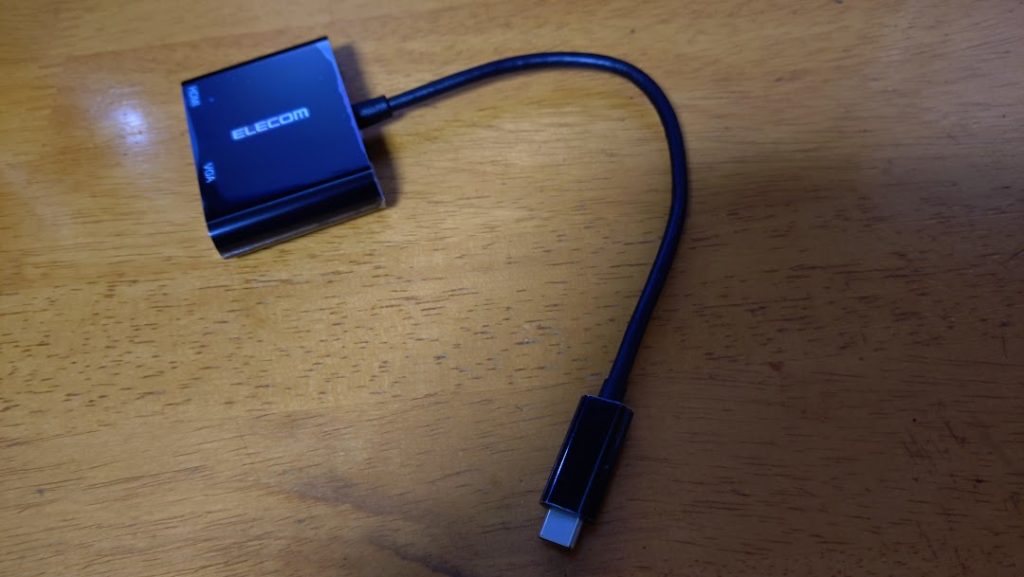 会社PCの仕様変更に対応するため、VGA + HDMI対応の変換アダプタ(ELECOM AD-CHDMIVGABK)を購入。