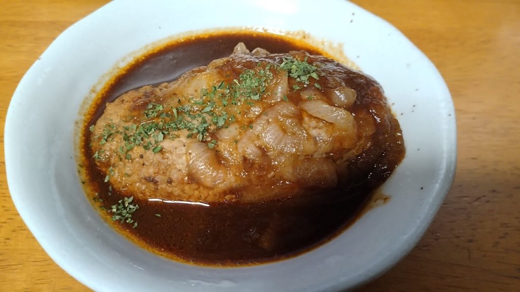 グレイビーソースとマッシュルームペーストのデミグラスソースは,非常に深い味わいです。